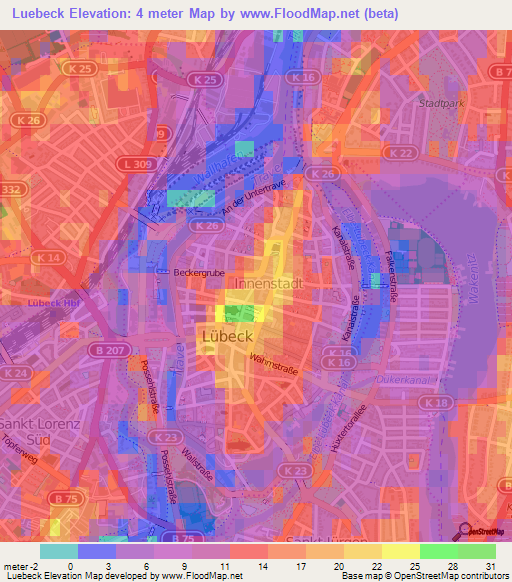 Note:Please note that Luebeck,Germany Elevation Map is in beta.