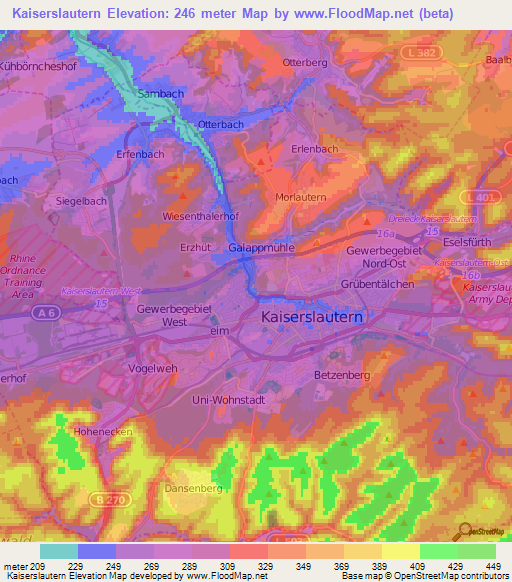Note:Please note that Kaiserslautern,Germany Elevation Map is in beta.