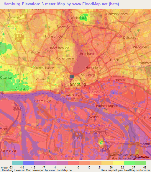 Note:Please note that Hamburg,Germany Elevation Map is in beta.
