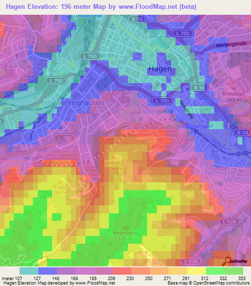Note:Please note that Hagen,Germany Elevation Map is in beta.