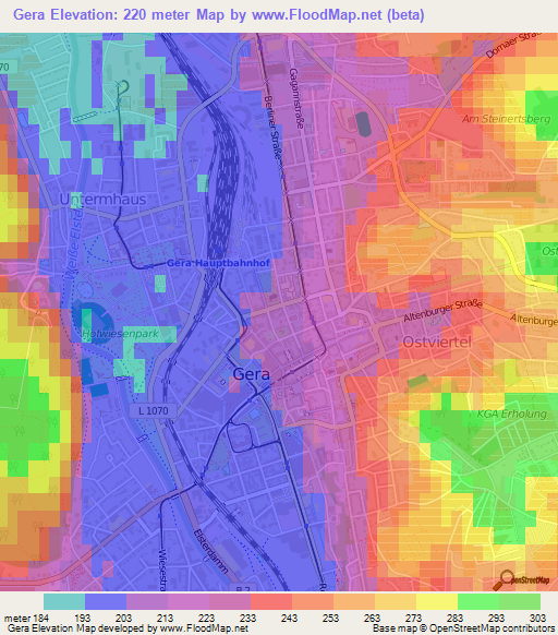 Note:Please note that Gera,Germany Elevation Map is in beta.