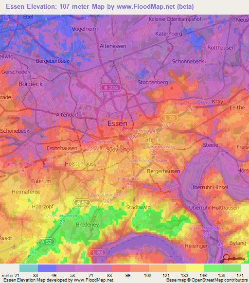 Note:Please note that Essen,Germany Elevation Map is in beta.