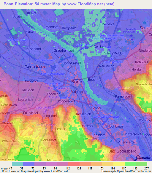 Note:Please note that Bonn,Germany Elevation Map is in beta.