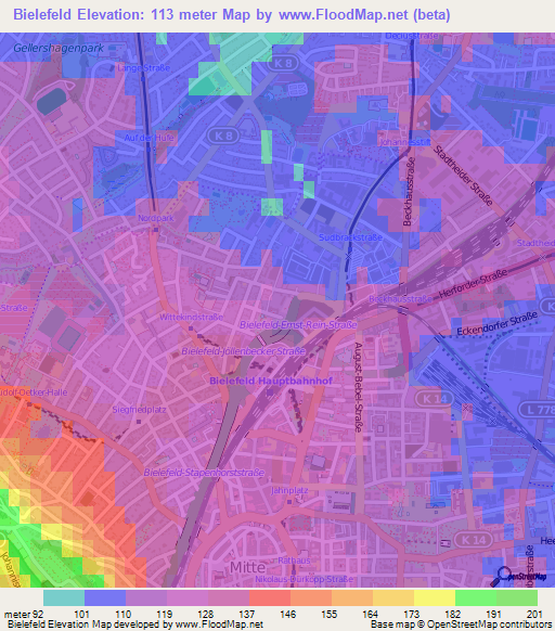 Note:Please note that Bielefeld,Germany Elevation Map is in beta.