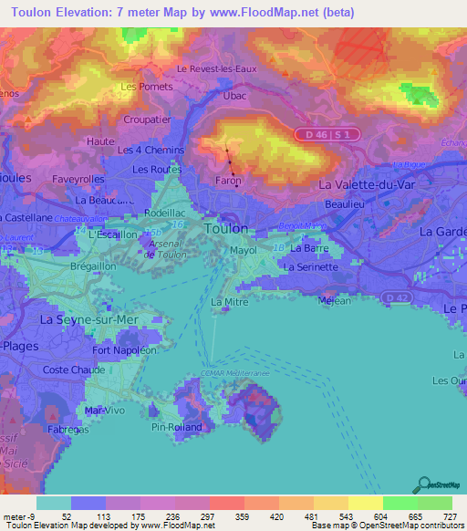 Note:Please note that Toulon,France Elevation Map is in beta.