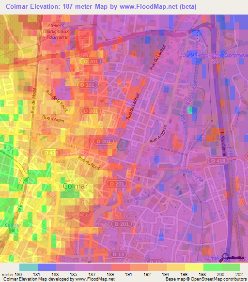 Note:Please note that Colmar,France Elevation Map is in beta.