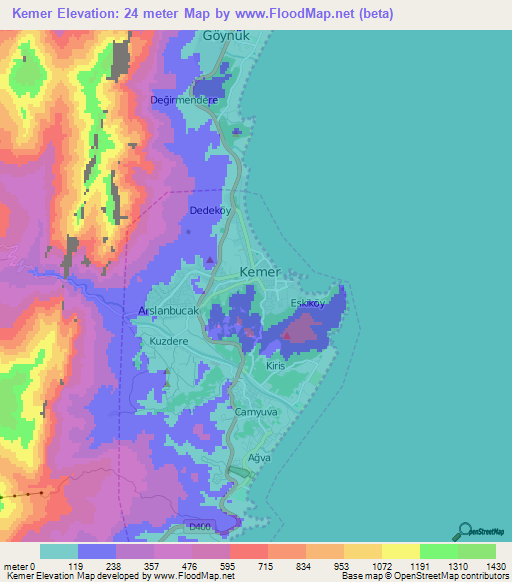 Note:Please note that Kemer,Turkey Elevation Map is in beta.