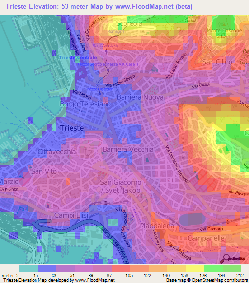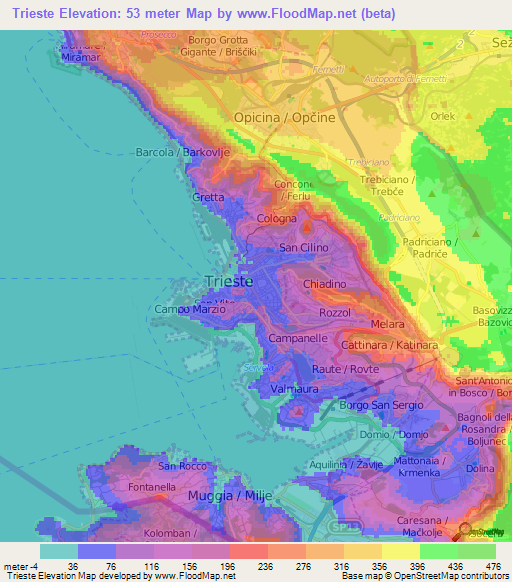 Note:Please note that Trieste,Italy Elevation Map is in beta.