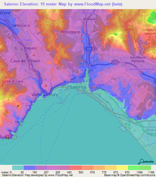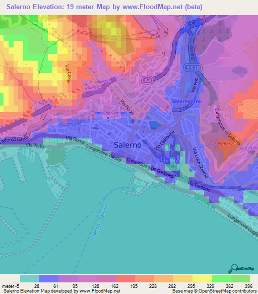 Note:Please note that Salerno,Italy Elevation Map is in beta.