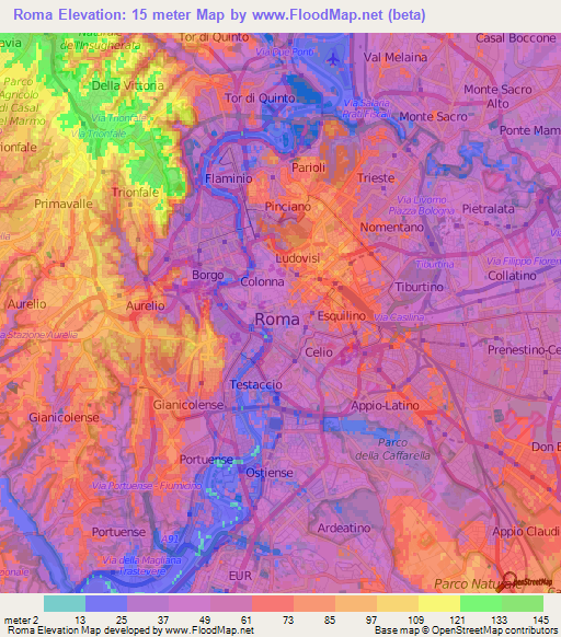 Note:Please note that Roma,Italy Elevation Map is in beta.