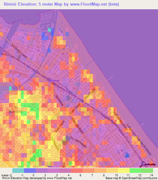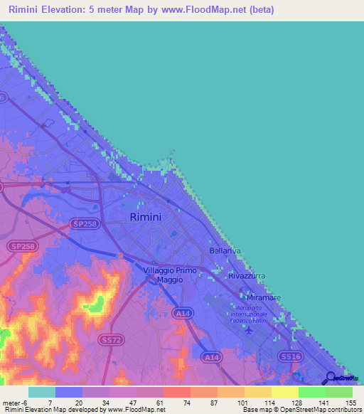 Note:Please note that Rimini,Italy Elevation Map is in beta.
