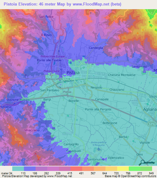 Note:Please note that Pistoia,Italy Elevation Map is in beta.