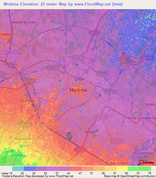 Note:Please note that Modena,Italy Elevation Map is in beta.