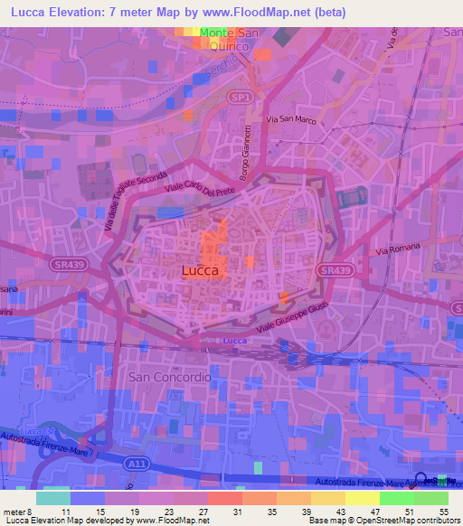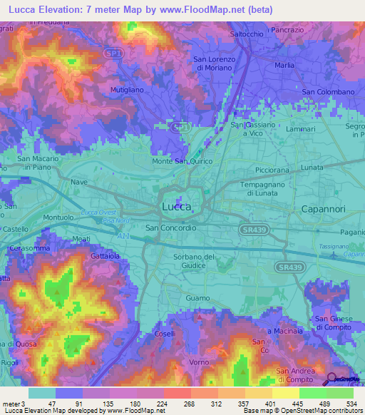 Note:Please note that Lucca,Italy Elevation Map is in beta.
