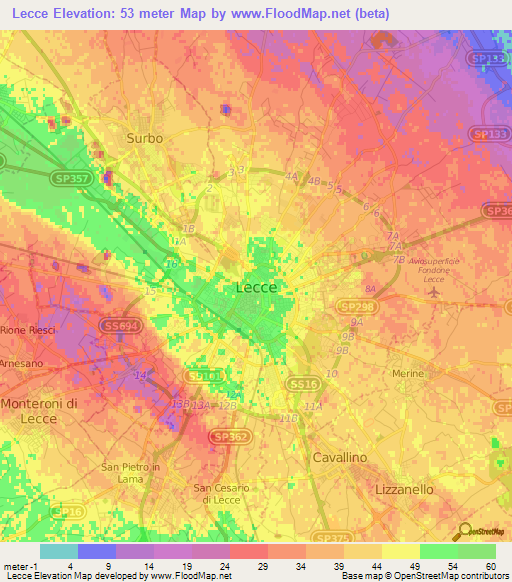 Note:Please note that Lecce,Italy Elevation Map is in beta.