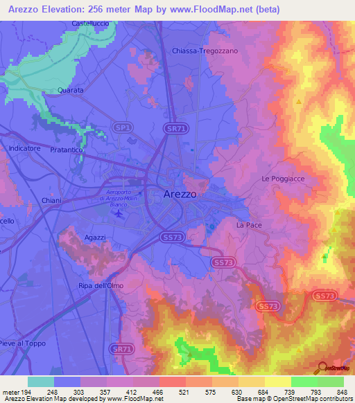 Note:Please note that Arezzo,Italy Elevation Map is in beta.