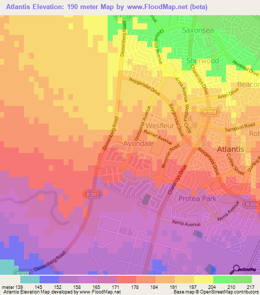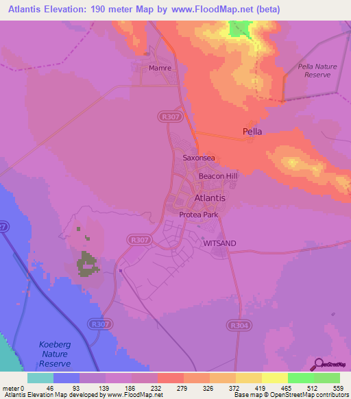 Note:Please note that Atlantis,South Africa Elevation Map is in beta.