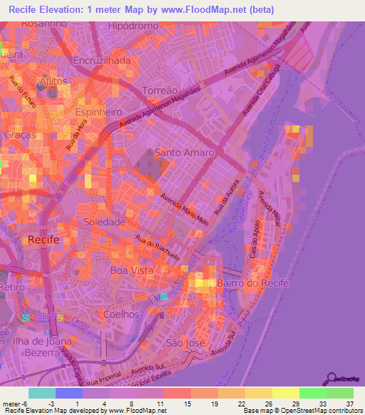 Note:Please note that Recife,Brazil Elevation Map is in beta.