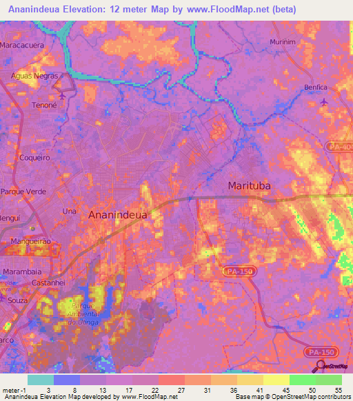 Note:Please note that Ananindeua,Brazil Elevation Map is in beta.
