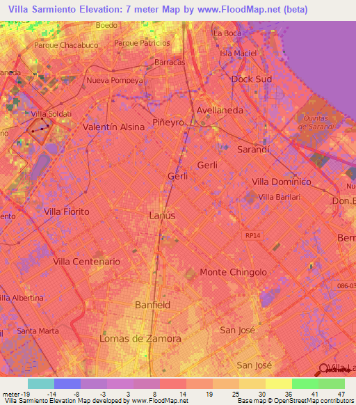 Note:Please note that Villa Sarmiento,Argentina Elevation Map is in beta.