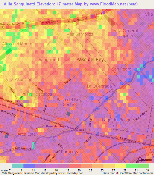 Note:Please note that Villa Sanguinetti,Argentina Elevation Map is in beta.