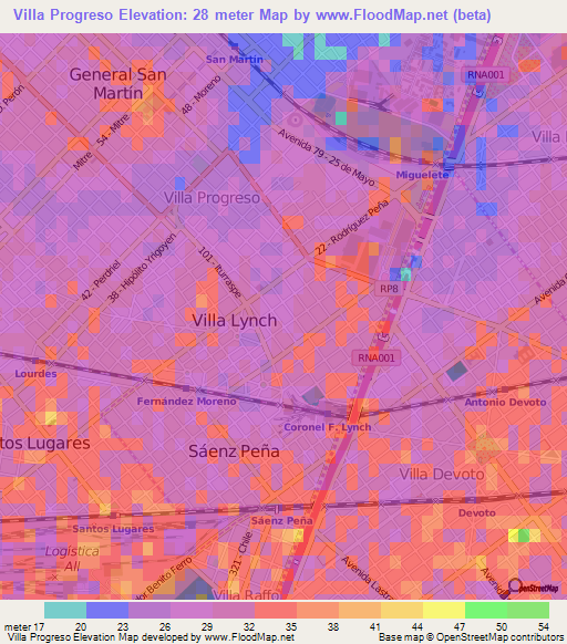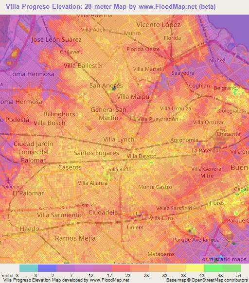 Note:Please note that Villa Progreso,Argentina Elevation Map is in beta.