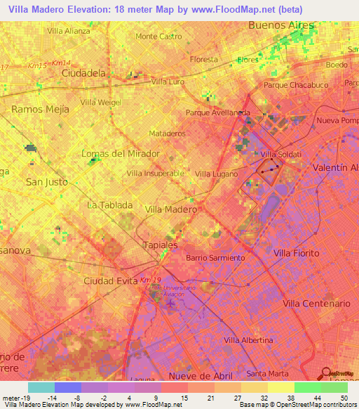 Note:Please note that Villa Madero,Argentina Elevation Map is in beta.