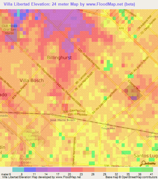 Note:Please note that Villa Libertad,Argentina Elevation Map is in beta.