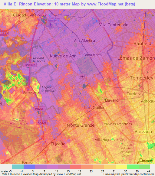 Note:Please note that Villa El Rincon,Argentina Elevation Map is in beta.