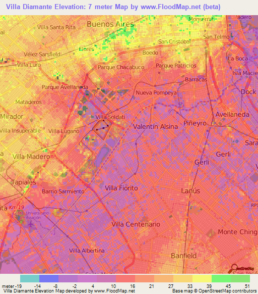 Note:Please note that Villa Diamante,Argentina Elevation Map is in beta.