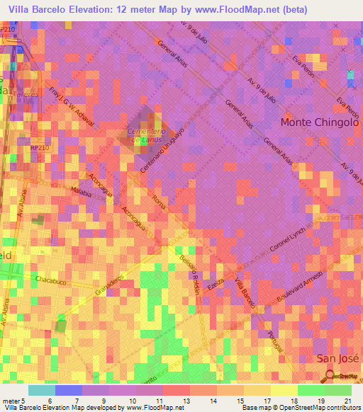 Note:Please note that Villa Barcelo,Argentina Elevation Map is in beta.