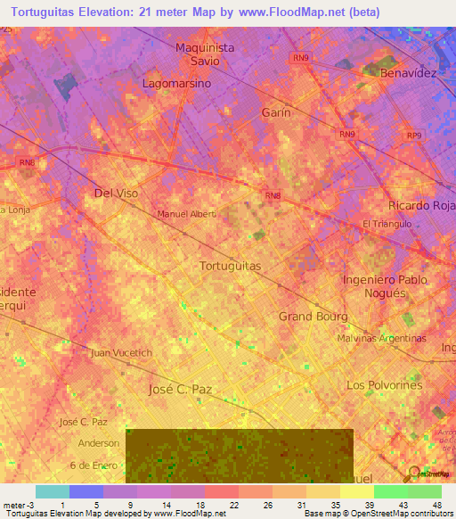 Note:Please note that Tortuguitas,Argentina Elevation Map is in beta.