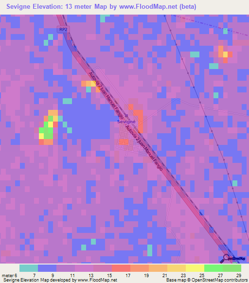 Note:Please note that Sevigne,Argentina Elevation Map is in beta.