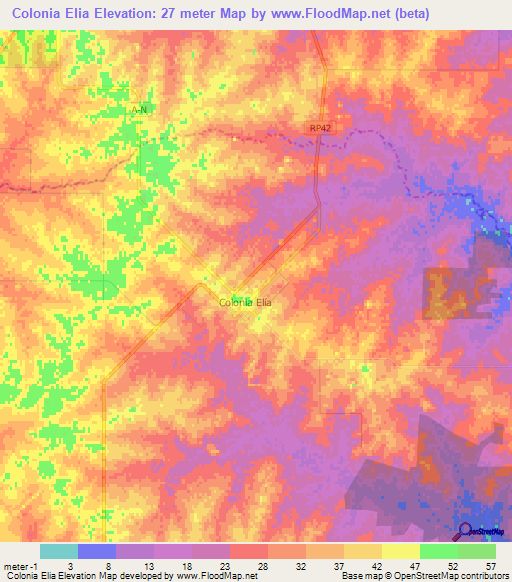 Note:Please note that Colonia Elia,Argentina Elevation Map is in beta.