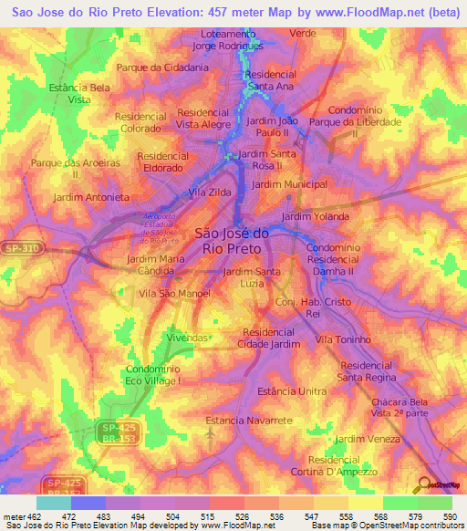 Note:Please note that Sao Jose do Rio Preto,Brazil Elevation Map is in beta.