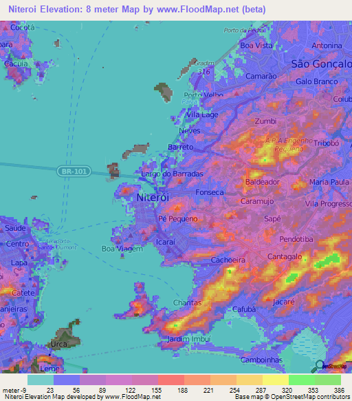 Note:Please note that Niteroi,Brazil Elevation Map is in beta.