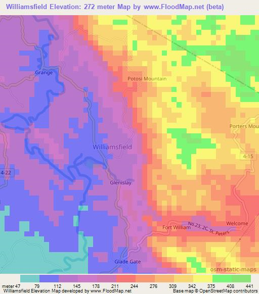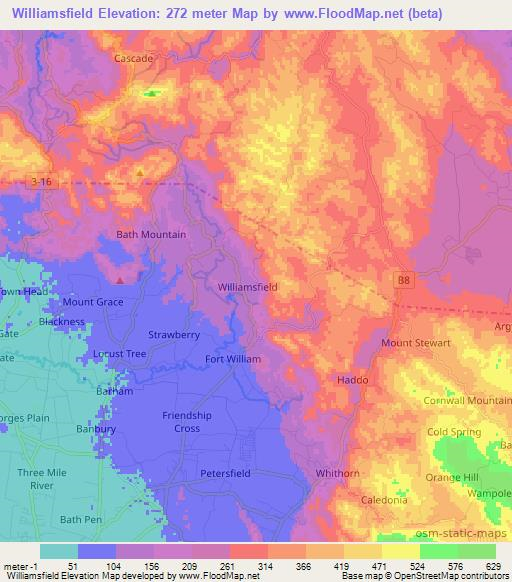 Note:Please note that Williamsfield,Jamaica Elevation Map is in beta.