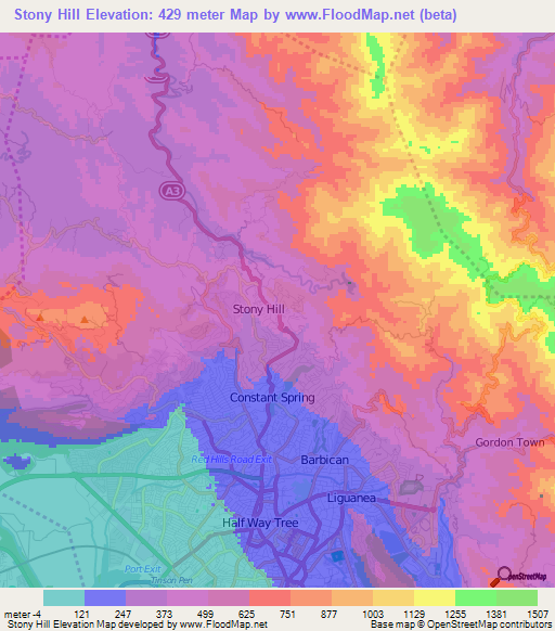 Note:Please note that Stony Hill,Jamaica Elevation Map is in beta.