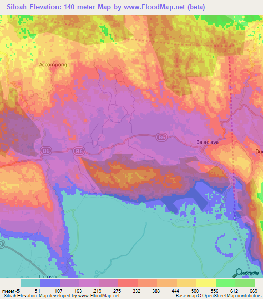 Note:Please note that Siloah,Jamaica Elevation Map is in beta.