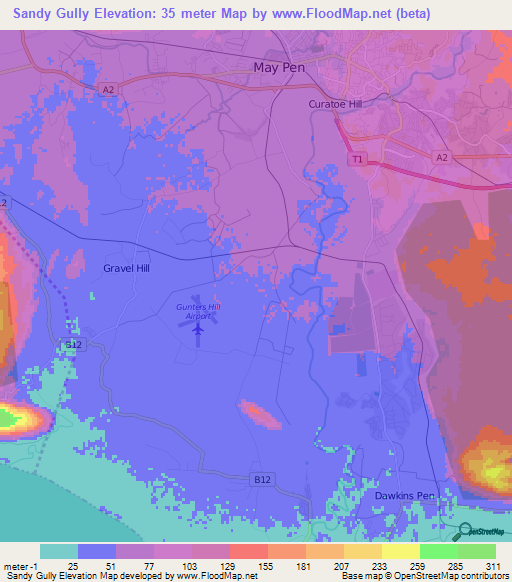 Note:Please note that Sandy Gully,Jamaica Elevation Map is in beta.