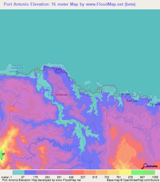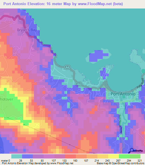 Note:Please note that Port Antonio,Jamaica Elevation Map is in beta.