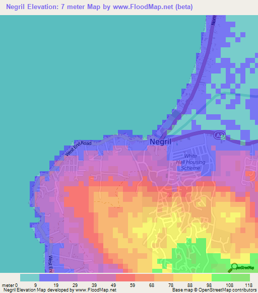 Note:Please note that Negril,Jamaica Elevation Map is in beta.