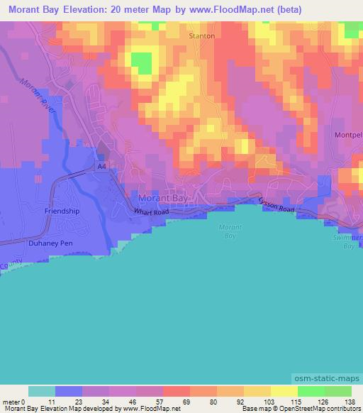 Note:Please note that Morant Bay,Jamaica Elevation Map is in beta.