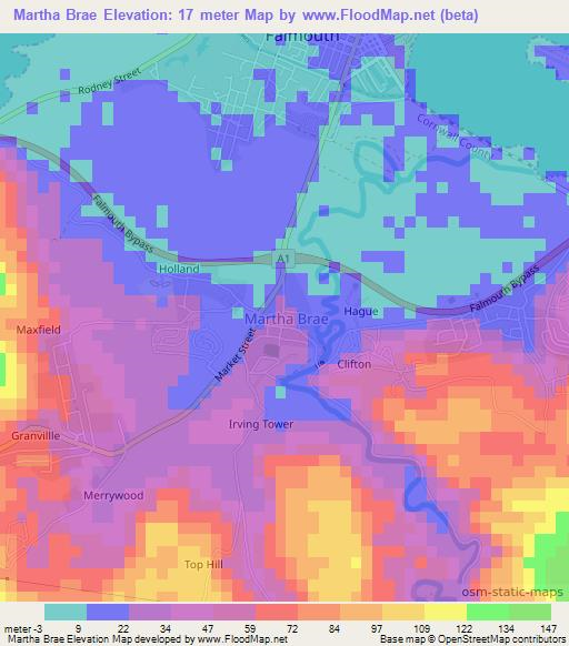 Note:Please note that Martha Brae,Jamaica Elevation Map is in beta.