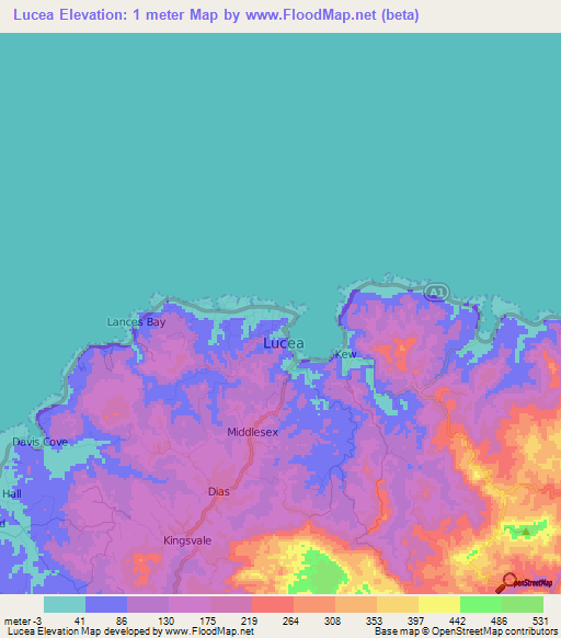 Note:Please note that Lucea,Jamaica Elevation Map is in beta.