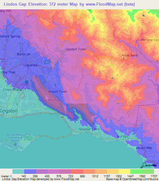 Note:Please note that Lindos Gap,Jamaica Elevation Map is in beta.