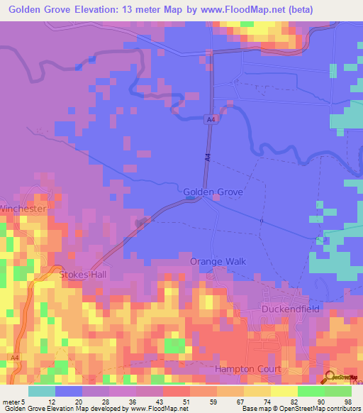 Note:Please note that Golden Grove,Jamaica Elevation Map is in beta.