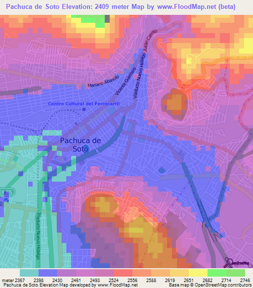 Note:Please note that Pachuca de Soto,Mexico Elevation Map is in beta.