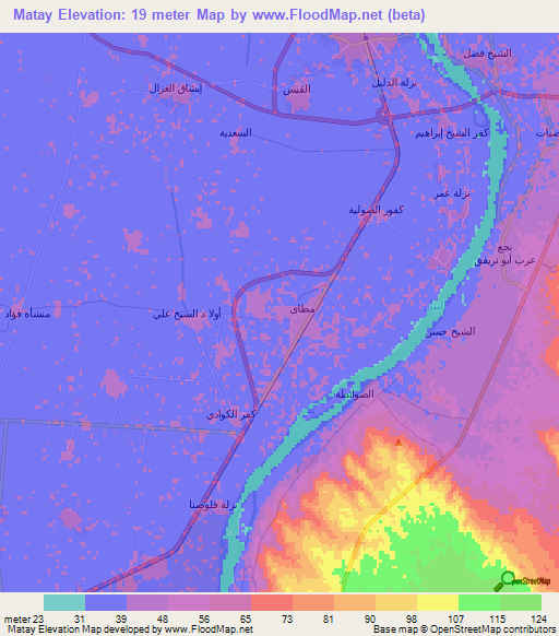 Note:Please note that Matay,Egypt Elevation Map is in beta.