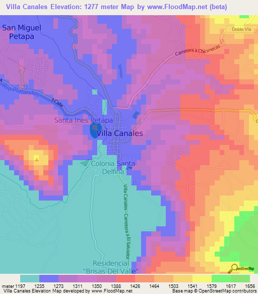 Note:Please note that Villa Canales,Guatemala Elevation Map is in beta.